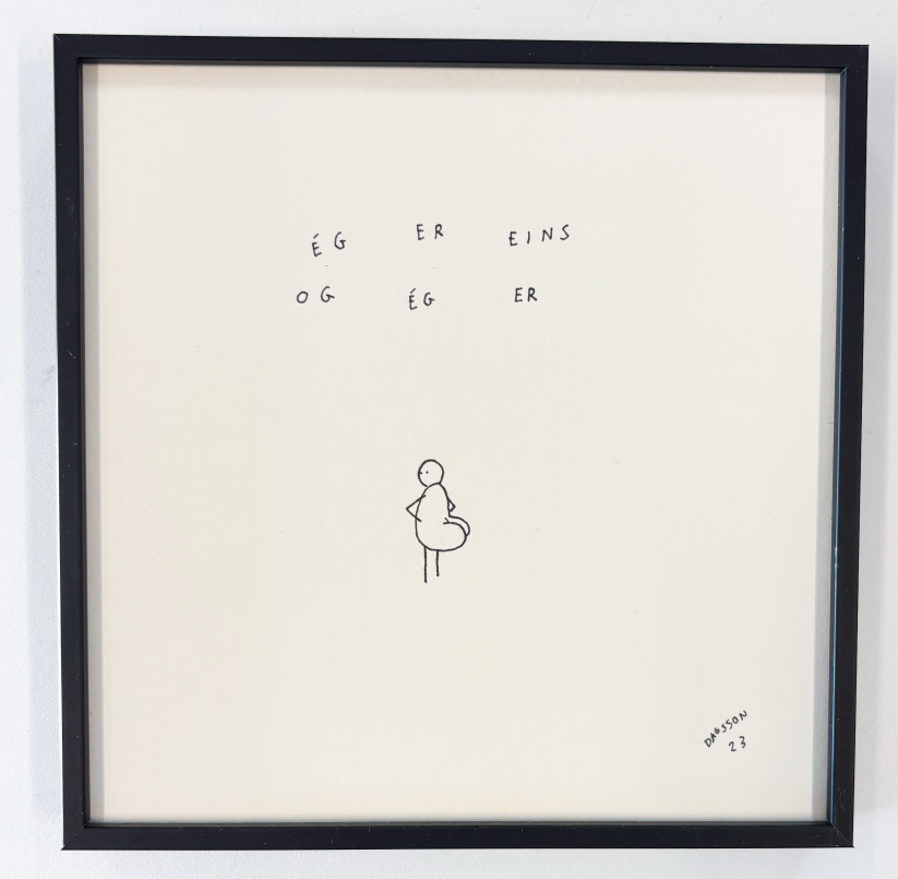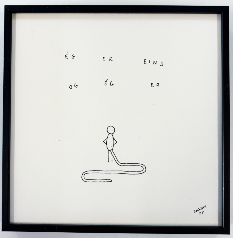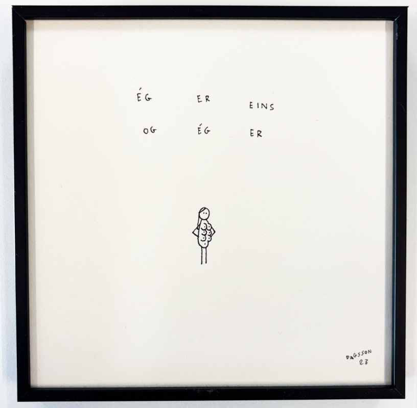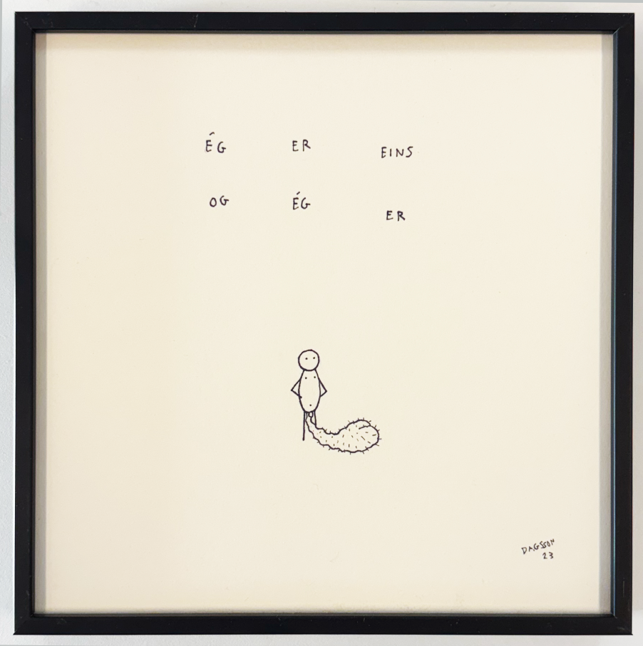 Upprunaleg teikning. Innrömmuð í svartan álramma með glampfríu gleri 15x15 cm á stærð. Sendingargjald innifalið.